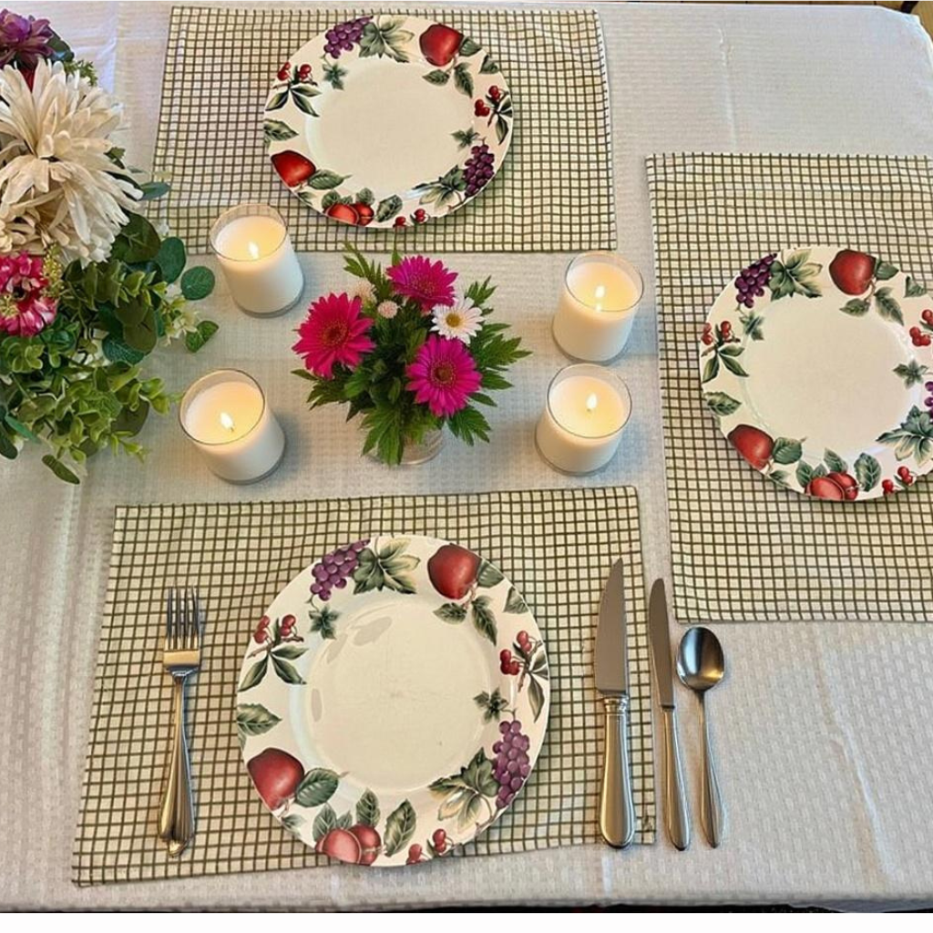 Lindos individuales que resaltaran tu mesa, a cuadritos, especial para terrazas. Realizados en algodón, forrados y lavables a máquina .